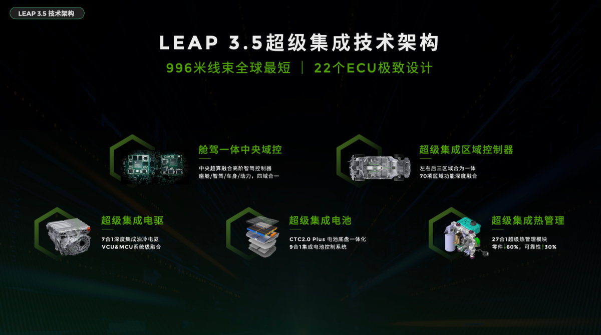 虽说很多车企也懂这个道理,但是有耐心进行这种长周期投资的却没几家,恰好零跑汽车就是其中的一个。以代表零跑十年自研最新成果的LEAP3.5 技术架构为例,它不仅拥有全球最高集成度控制体系的中央域控架构,通过高度集成的控制模块,实现提升系统响应速度和稳定性,还搭载有AI大模型赋能的智能座舱、支持持续进化的高阶智驾系统,以及行业首创的多功能电池底盘一体化架构等多项领先技术,可以说从软件到硬件,甚至到制造和调校等多方面,零跑汽车都能通过全域自研实现大幅降低采购和匹配的成本,从而在定价端以科技普惠来反哺消费者,让现在更加理性消费的用户,以相同的价格就享受到越级的产品体验,可谓是一举两得。